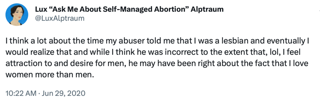 That thread — and more than that, the revelation about myself that it represented — changed my life. I had spent years thinking of myself as a “bad bisexual,” sexually attracted to women but romantically available only to men. But now I was reckoning with the possibility that that was my internalized biphobia, and not lack of attraction, that had led me to largely avoid romantic relationships with women. Now I was contending with the idea that it was biphobia, and not my own desire patterns, that had trapped me in this prison of “bad” bisexuality.