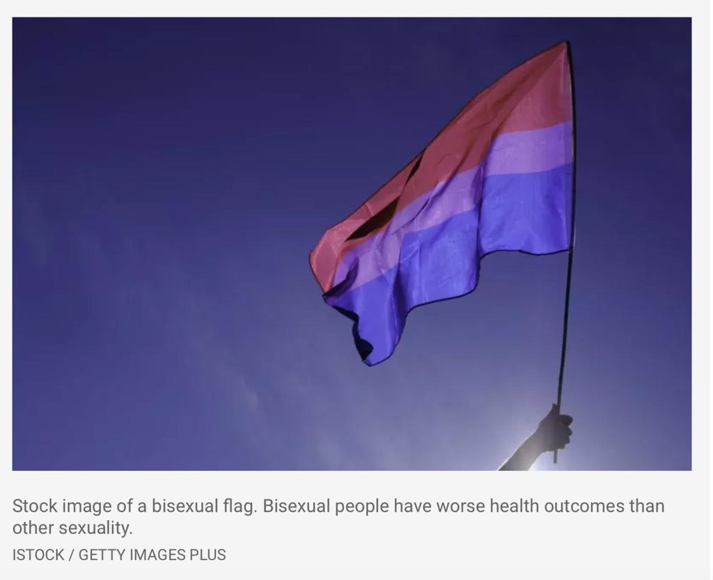 So last week my inbox was blowing up with headlines about a research paper that analyzed whether you can tell a man is bisexual just by the sound of his voice (which… who gives a shit). Now I’m overwhelmed by headlines about how bi people — and bi women in particular — have shitty health, both mental and physical.